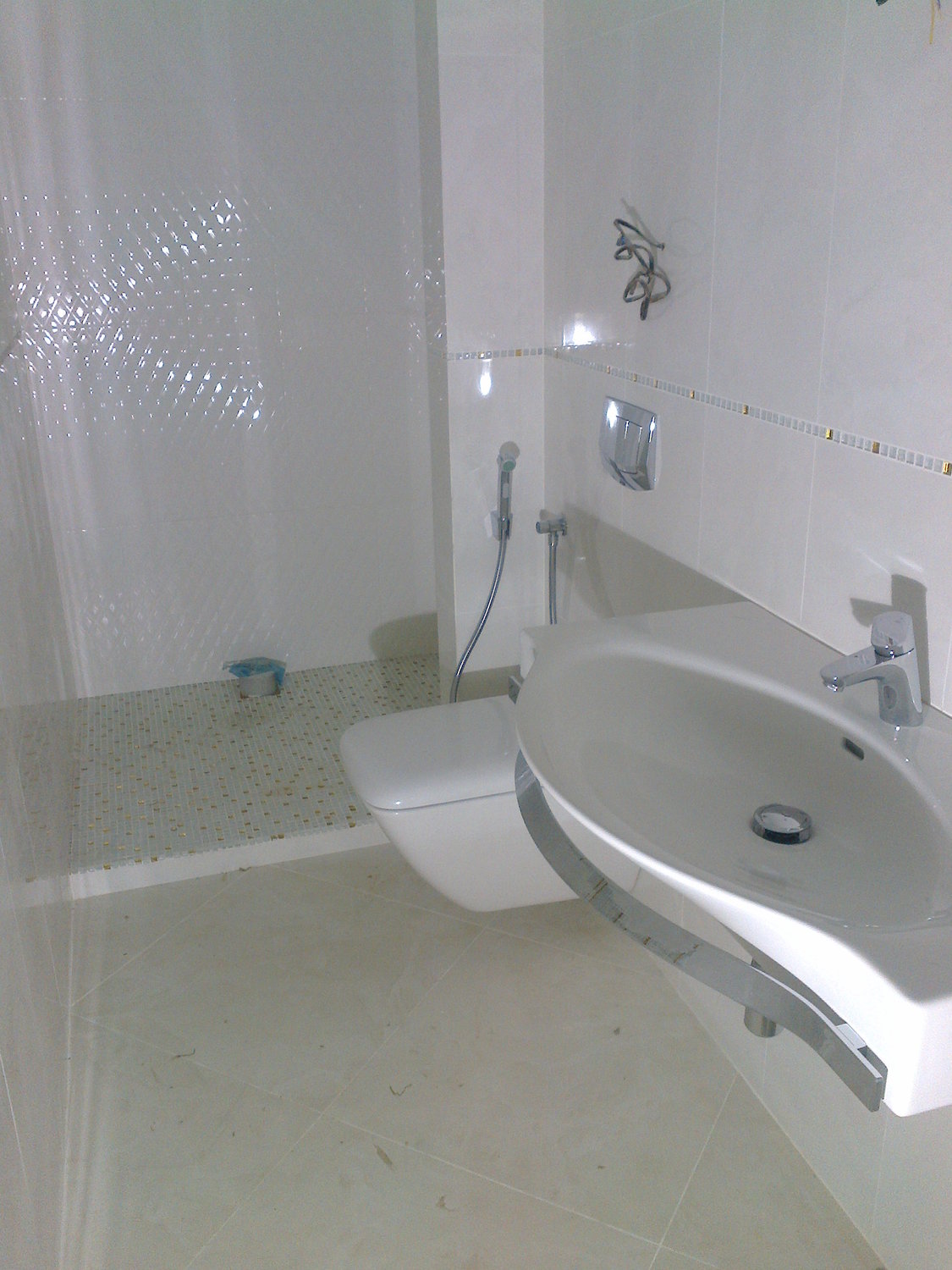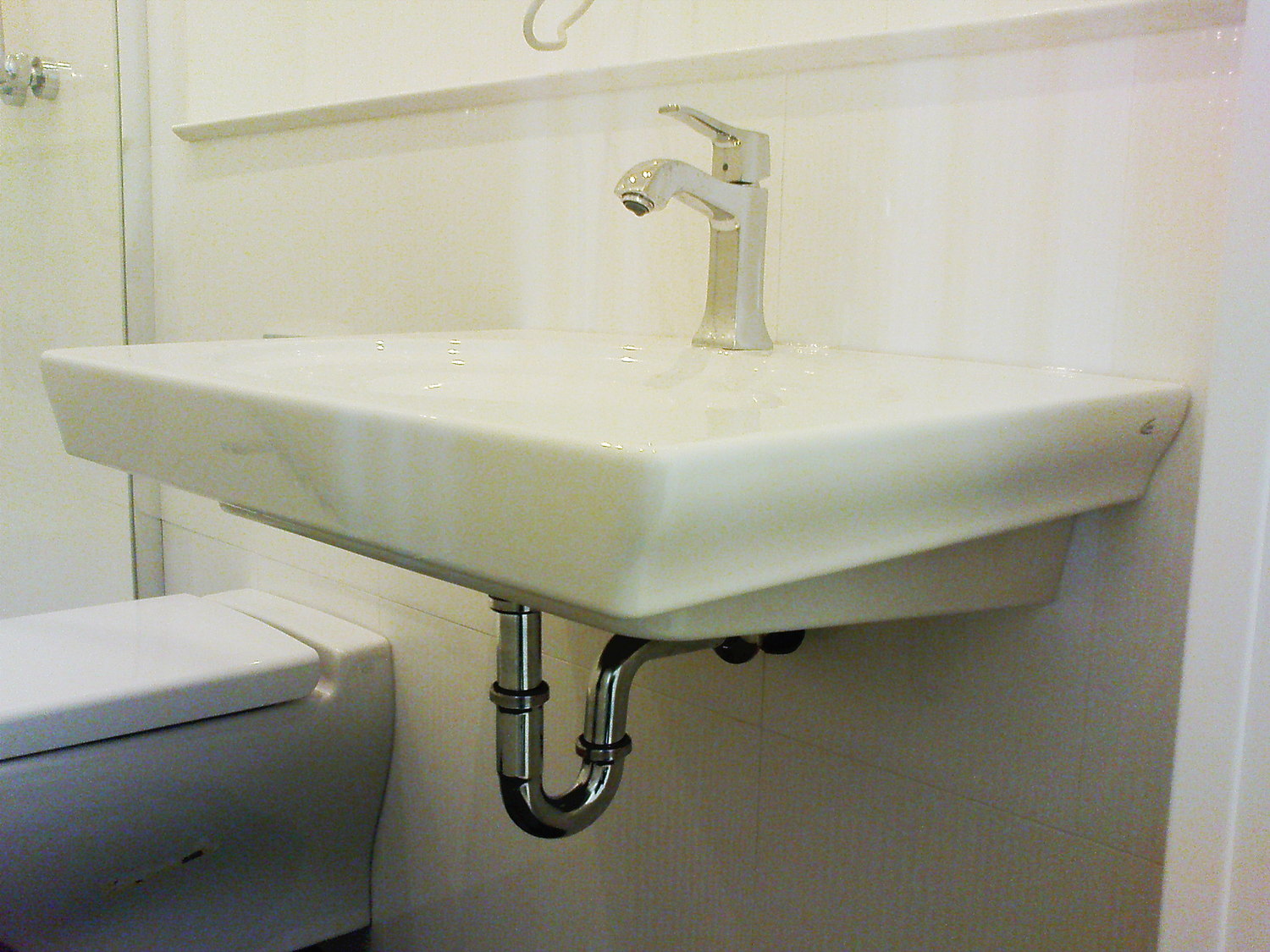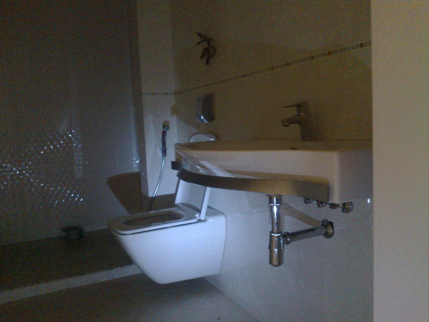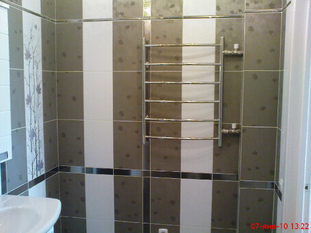Перед основным монтаже проверяем весь санфоянс и не достающие комплектующие(сифоны, краны, шланги, крепежные элементы) закупаем у надежных поставщиков. Стыки прилегающего санфоянса к плитке промазываются матовым герметиком фирмы Shemlux. Раковины и другое оборудование настенного размещения закрепляются на стеновых панелях с использованием мощных кронштейнов, незаметных, но прочно удерживающих изделия независимо от внешней нагрузки.