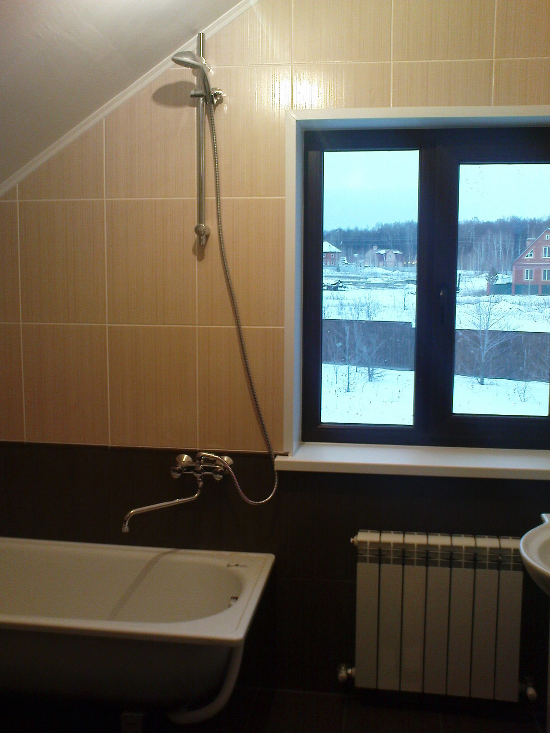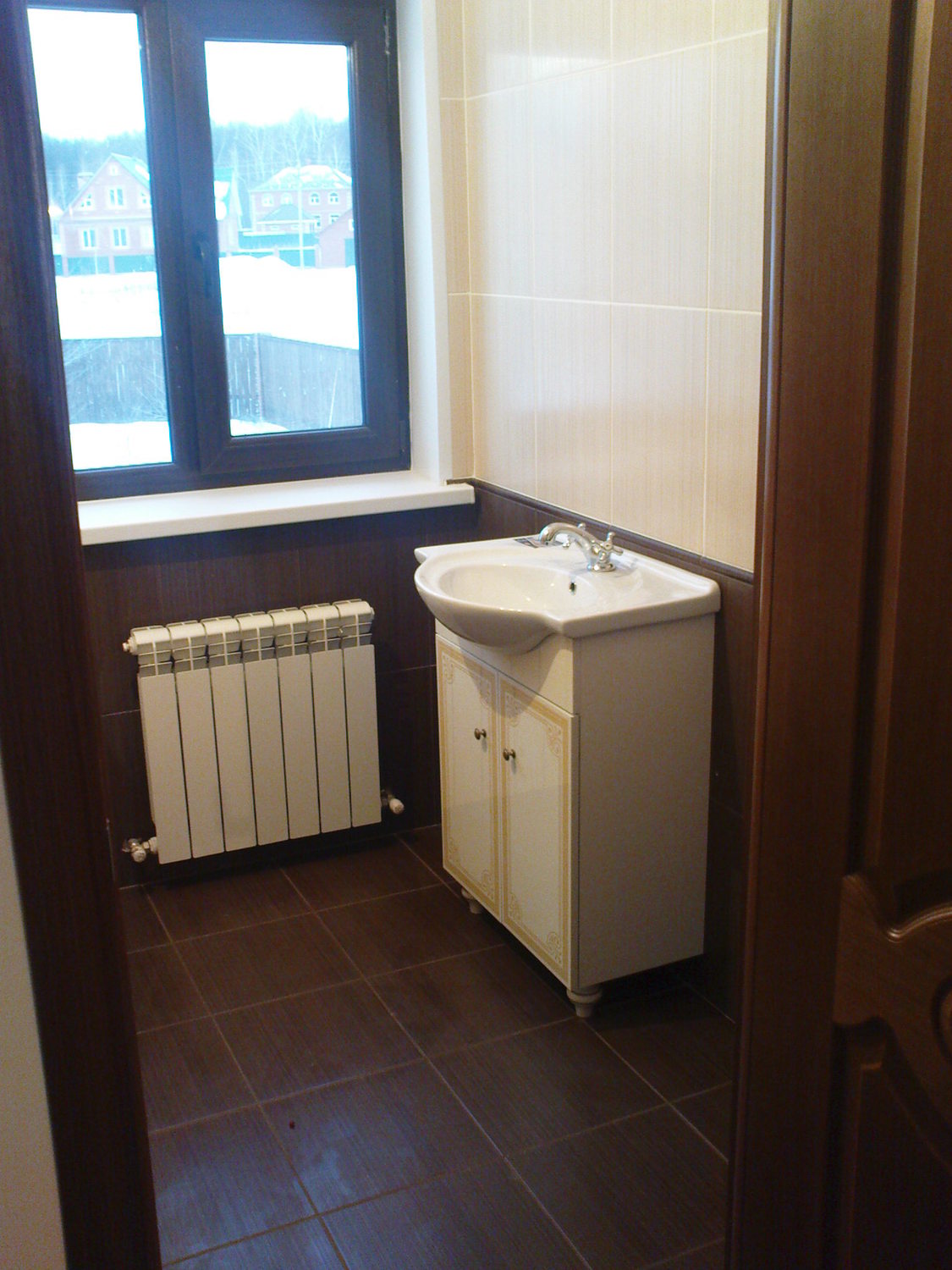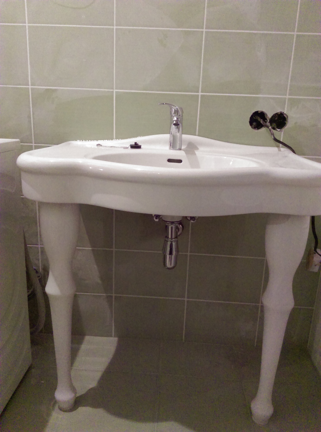 Перед основным монтаже проверяем весь санфоянс и не достающие комплектующие(сифоны, краны, шланги, крепежные элементы) закупаем у надежных поставщиков. Стыки прилегающего санфоянса к плитке промазываются матовым герметиком фирмы Shemlux. Раковины и другое оборудование настенного размещения закрепляются на стеновых панелях с использованием мощных кронштейнов, незаметных, но прочно удерживающих изделия независимо от внешней нагрузки.